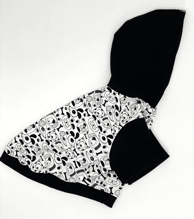 The pup that loves snuggling up in your favorite hoodie finally gets a doggy version that's just their size. The contrasting fabrics feature a pop-art inspired puppy print with floppy ears and sniffin' snouts galore.