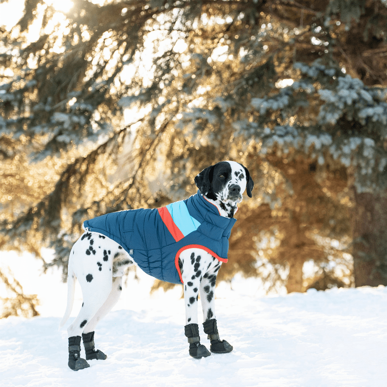 Unlike other coats, the Elasto-fit® design is made to hug your dog. Please expect a snug fit for extra warmth, as the elastics follow your dog's movements and expand for security and comfort.