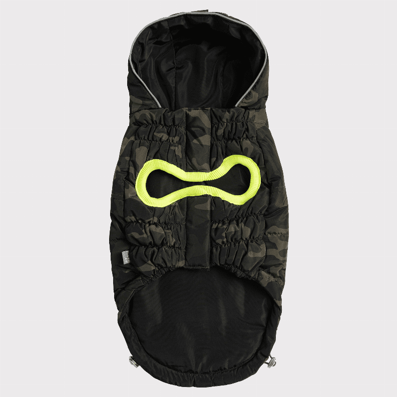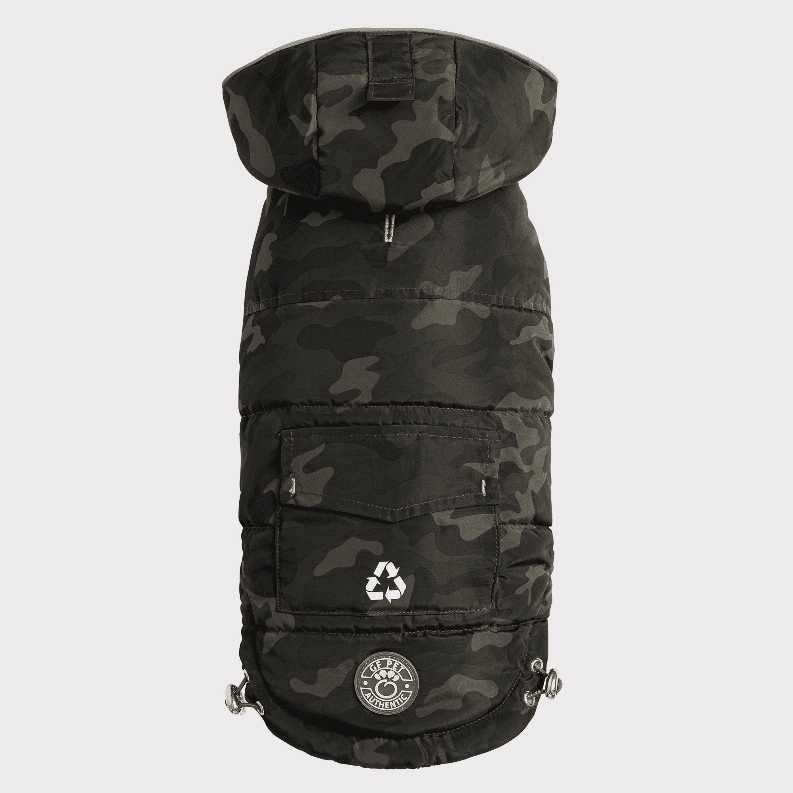 The GF Pet Recycled Parka is made from 100% recycled fabrics. The fabric used to make this sustainable parka is produced from recycled water bottles and is responsible, versatile, heritage-inspired and weather resistent. Enjoy the ever-stylish GF Pet signature contrast binding and accents. With its' tackable hood, practical real pocket and reflective piping, it will keep your dog protected and cozy. Super adjustable, with patented Elasto-Fit technology! For dogs and owners who are proud to support our planet.