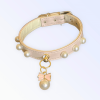 Classic and chic! The Beaded Pearls and Bow Collar features a row of classy pearls and a pearl bow dangle charm.The collar is made of the softest vegan leather and features a rhinestone buckle.* 1/2" wide for a comfortable fit