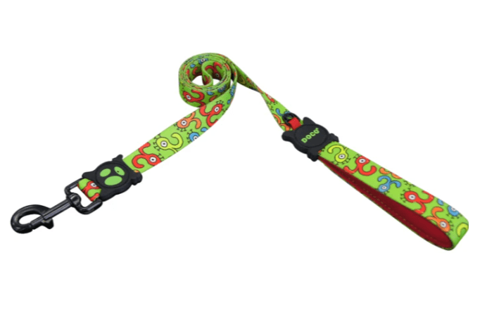 DOCO LOCO Eco-Friendly Heat Transfer Design Dog Leash are designed with our LOCO dog logo. Features soft, fray resistant and designed for generous hand loop for walking, hiking and running with NEOPRENE HANDLE. LOCO loves the crazy and fashionable patterns, unique hardware and fully welded black anodized metal parts. The eco-friendly prints are colorful and fun. Black finished zinc alloy durable metal 360? swivel hook is comfortable to snap on any dog collar or harness.