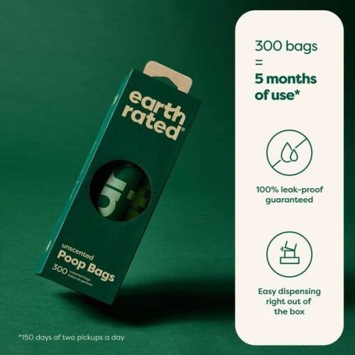 Eco-Friendly Unscented Dog Waste Bags by Earth Rated are the ultimate dog walking accessory for eco-conscious pet parents who want durability, convenience, and sustainability in one. Perfect for outdoor use, these extra-strong, leak-proof dog poop bags make clean-ups simple whether you’re on a walk, at the park, or tidying up the yard. With 300 bags in a bulk single roll, you’ll always be prepared, reducing stress while helping the planet by giving new life to over 5 million pounds of landfill-bound plastic each year.