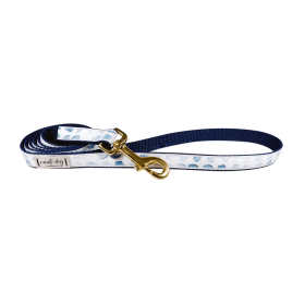 Raindrop Spring Watercolor Blue Herringbone Ribbon Dog Leash (Color: Gold)