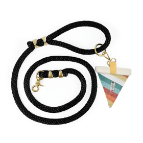 Sunset Retro-Mod Stripe Ribbon Dog Leash (Color: Black Gunmetal)