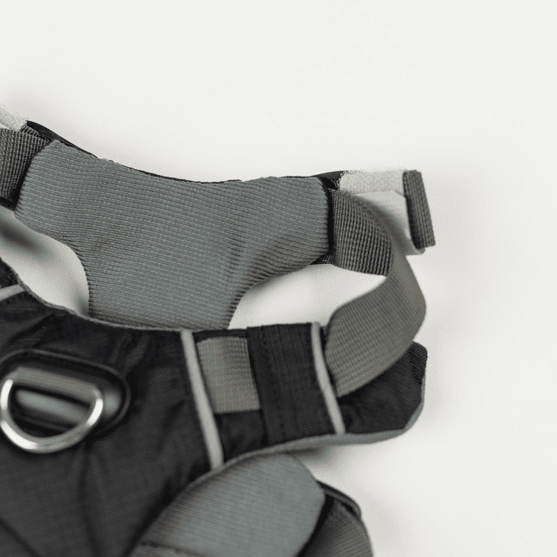 EZ Fit Straps with locking Velcro allows for quick adjustments. EZ Fit Buckles open for fast adjustment, then latch down to lock securely with remaining strap secured in rubber loops. In 10 seconds or less, all the adjustments are done and off you go. Triple stitching, top-quality padded comfort, and durability make this water-resistant harness the best in the world.