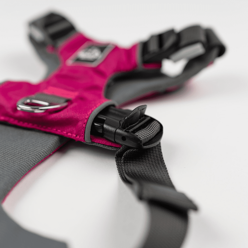 EZ Fit Straps with locking Velcro allows for quick adjustments. EZ Fit Buckles open for fast adjustment, then latch down to lock securely with remaining strap secured in rubber loops. In 10 seconds or less, all the adjustments are done and off you go. Triple stitching, top-quality padded comfort, and durability make this water-resistant harness the best in the world.
