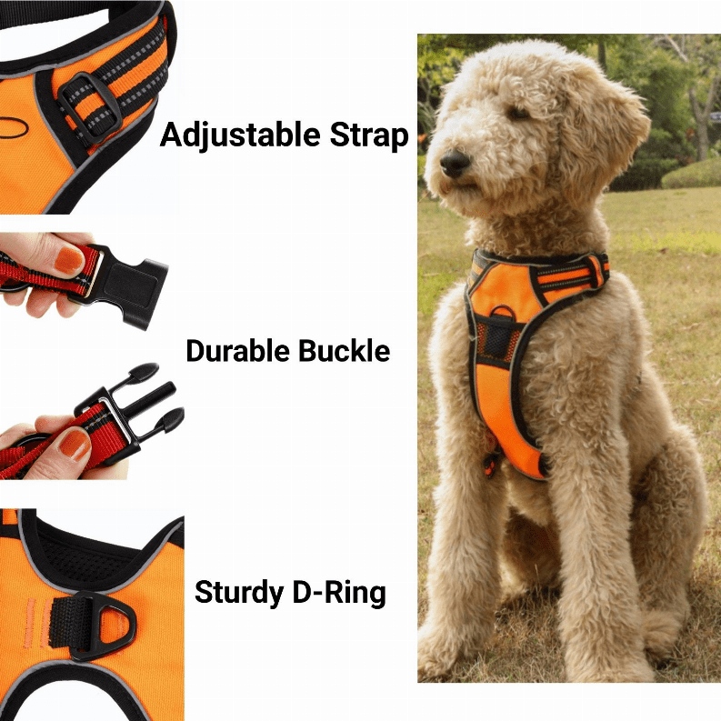 • The 4 Adjustable Side Buckles ensure the harness can adjust to your dog
