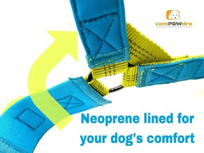 Our humane, easy-to-use, no-pull three point connection premium harness is a complete game changer for any strong pulling dog. It's quick, comfortable and safe. The Omni Harness is an easy-to-fit, no-pull harness that promotes gentle and effective leadership of your dog while walking, jogging or running. It safely discourages pulling and lunging behaviors. The walker can attach the harness at the front or shoulder control loop to the leash, or utilize the bonus dual attachment to employ both control loops (especially effective for very strong pullers). Reflective webbing ensure nighttime visibility. The Omni Harness is designed for comfort and ease of use with neoprene lining for softness against your dog's fur. This harness employs a single quick-snap buckle for fast and accurate placement every time. The harness is constructed using top quality materials. The harness is designed with "no-sag" joints on the sternum strap to keep the strap from drooping and interfering with your pet's natural gait.