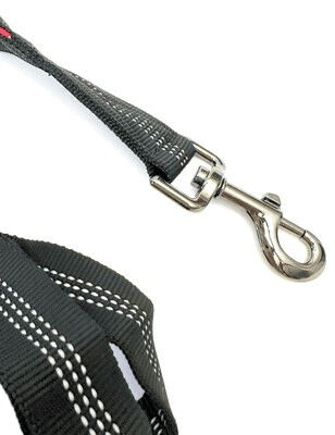 Our proprietary, patent-pending three lengths in one leash is the only leash you'll ever need for any situation or for any dog. Our multi-purpose adjustable leash is suitable for urban and rural walking, jogging and hiking. Easily adjustable lengths extend from 1' to 4' to 7' in seconds with color coded clips. Built in shock absorber at the 7' length to ensure comfort for human and dog. Neoprene lined handles to provide soft comfort and durable flexibility. Attached light-weight soft resistant waste bag for convenience and easy access. Reflective webbing for night time visibility. Heavy duty hardware you can trust. Love every walk!