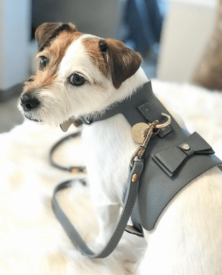 HANDMADE IN EUROPE PoisePup only sources from elite manufacturers around the world. Our products are carefully handmade in Europe using materials with the highest quality standards.DURABLE and STRONG - Made of genuine full-grain leather and suede, this gorgeous harness has two adjustable buckles to ensure a comfortable and perfect fit. Attach one of our leashes to the ? ring on the back and get ready for some attention!BEAUTIFUL and STYLISH DESIGN Each harness has been beautifully designed with meticulous attention to detail and crafting, adding a sophisticated look. The signature bow topped with Swarovski jewel makes this product uniquely elegant. MADE FOR COMFORT With the high-quality full grain and suede, our leashes are the softest and most comfortable on your pups.MATCHING , and To make this harness really pop, we recommend the matching PoisePup collar, leash and waste bag holder. Made from the same quality leather and finish, they look gorgeous independently or as a set.