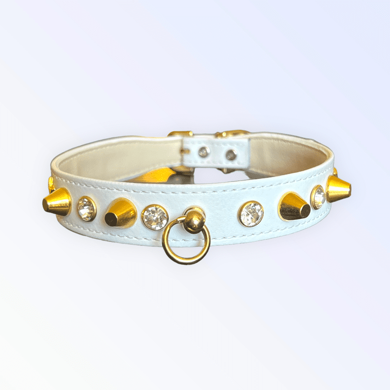 This super soft vegan leather studded collar features gold barrel studs with two star rivet studs, worthy of a true Rockstar!