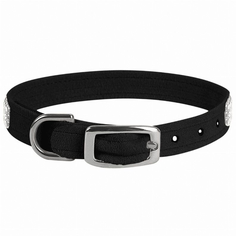 This collar has a premium look and feel, while being easy for you to maintain. Made from Ultrasuede fabric with the soft texture and feel of premium suede. Ultrasuede offers the highest grade of durability, making this collar resistant to stains and discoloration, it is even machine washable! From a variety of the world's finest crystals made in Europe, the lavish Giltmore rows radiate a brilliant display of light for your pup to light up a room. We recommend your dog should always be walked with a harness. Our collars are designed for ID tags, charms and for decoration, they are NOT designed for pulling dogs. Collar width is 0.5". Manufactured in the USA