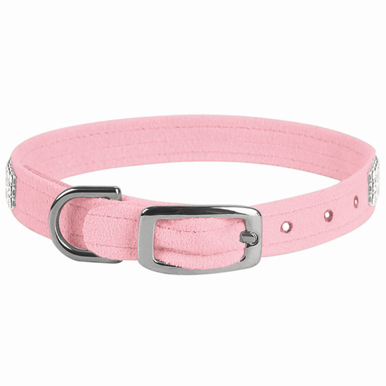 This collar has a premium look and feel, while being easy for you to maintain. Made from Ultrasuede fabric with the soft texture and feel of premium suede. Ultrasuede offers the highest grade of durability, making this collar resistant to stains and discoloration, it is even machine washable! From a variety of the world's finest crystals made in Europe, the lavish Giltmore rows radiate a brilliant display of light for your pup to light up a room. We recommend your dog should always be walked with a harness. Our collars are designed for ID tags, charms and for decoration, they are NOT designed for pulling dogs. Collar width is 0.5". Manufactured in the USA