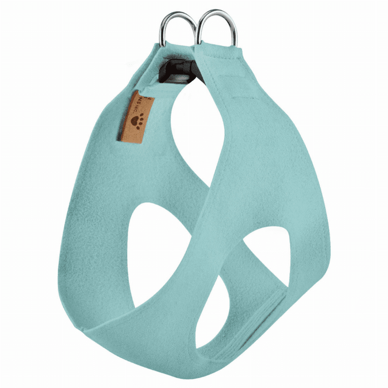 This harness is for those who value no-fuss convenience and no-choke comfort for their dog. Made from Ultrasuede fabric with the soft texture and feel of premium suede. Ultrasuede also has the highest grade of durability, making this harness resistant to stains and discoloration, it is even machine washable! The cut is well below the dog's neck, so any pulling is across the shoulders and not the neck resulting in pure comfort for your dog. The harness fastens by a single quick-release buckle. Manufactured in the USA