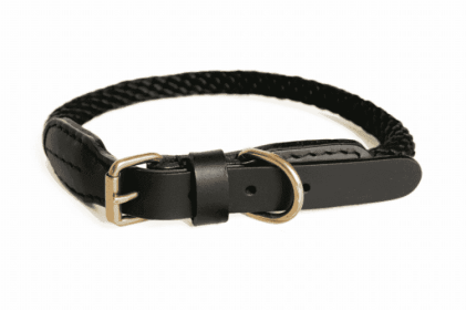 Rope and Leather Dog Collar with Buckle by Alvalley (size: 22 in)
