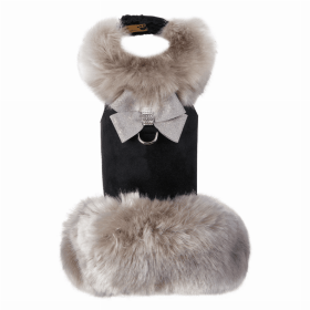 Susan Lanci Designs Platinum Glitzerati Double Nouveau Bow Luxury Carrier with Fur Trim (Color: Platinum Glitzerati, size: 1)