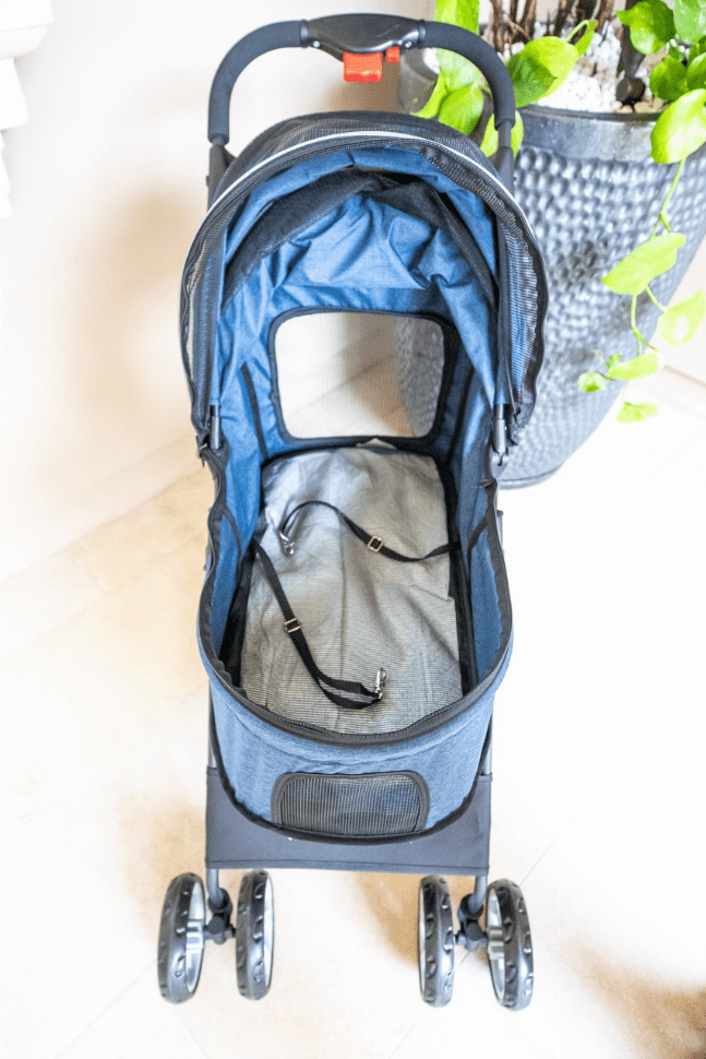 Pet and Pets Catalina Pet Stroller is one of our lightest, medium sized pet stroller with a cup holder tray and storage basket that creates a easy travel experience for you and your pets. Featuring our durable frame and 360 degree rotating wheels for easy maneuvering, our Pet Stroller provides a smooth and enjoyable experience for your pets. Even pets who are handicapped, elderly, or have anxiety, will feel secure and comfortable in the Catalina Pet Stroller. Youll love the way our patented pee pad insert feature creates an added advantage to help with messes and make cleaning up a lot easier. With mesh windows all around the stroller, your pets will feel secure and relaxed in the confines of their well ventilated ride.