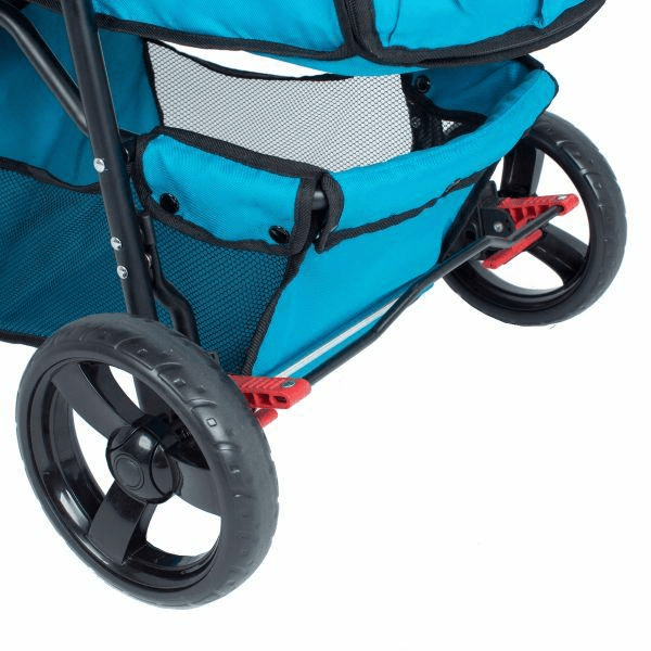 Petique Durable Pet Stroller is so sturdy and well made with its thick frame, large EVA tires and double front wheels, it makes for a smooth and enjoyable ride when walking your dogs, cats, and other animals! It has an additional large storage basket, two large back pockets and a cup holder tray that holds up to two cups! This pet stroller is designed to create a comfortable experience for you and your pets! With quality mesh windows that provide optimal air circulation throughout the stroller, your pets will feel calm, happy and secure.
