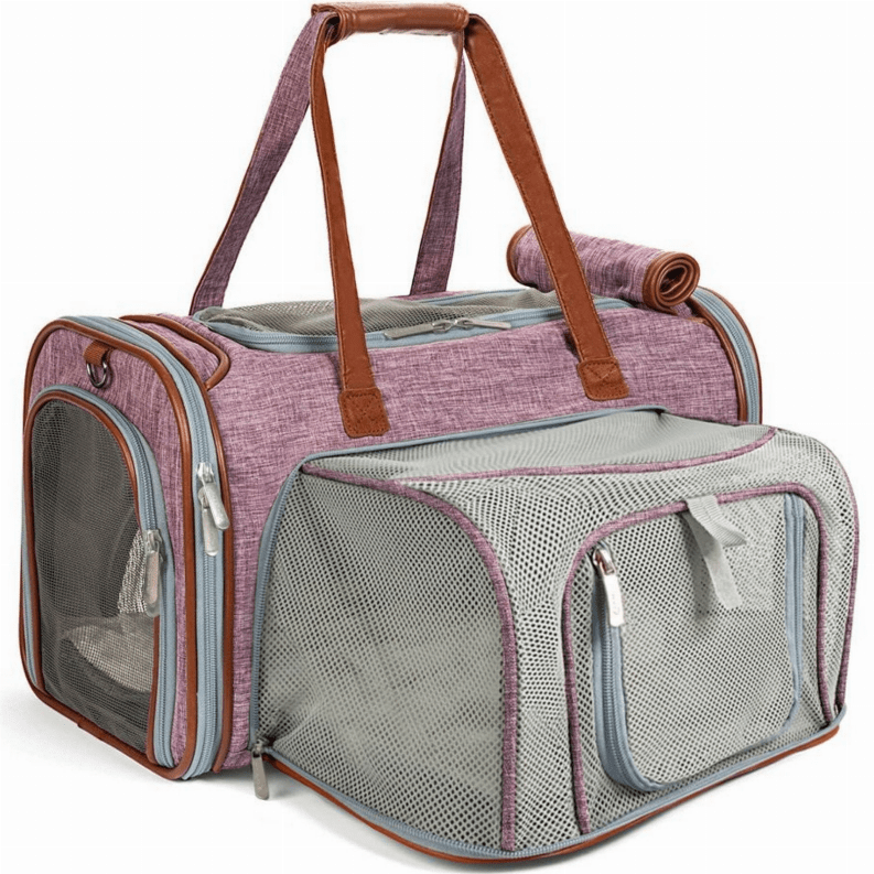 • Wipe Down Composite Nylon Soft-Sided Pet Carrier w Vegan Leatherette Highlights